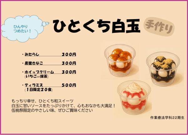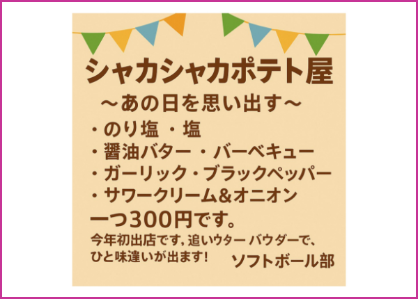 こんにちは。2025年度伍桃祭実行委員会出店代表の星野です。今年度の伍桃祭は準備の段階で新しく挑戦することが多く、失敗も多くあると思いますが、出店担当の9人で頑張っていきますのでよろしくお願いします。